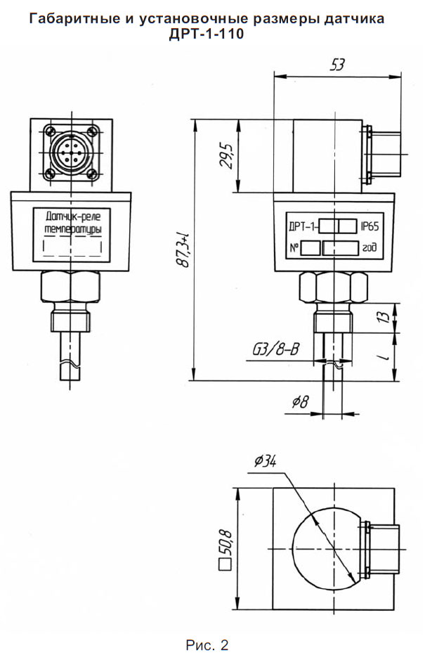 «Датчик-реле температуры ДРТ-1-220 5Д2.821.016 ТУ, tBУ = 70 °С, tНУ = 55 °С, l = 75 мм».- Назначение