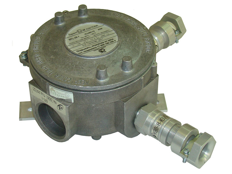 - Блок имеет уровень взрывозащиты «взрывобезопасный», вид взрывозащиты — «взрывонепроницаемая оболочка», маркировку 1ЕхdIIСТ6, соответствует требованиям ГОСТ Р 51330.0, ГОСТ Р 51330.1 и может быть установлен во взрывоопасных зонах классов 1, 2 согласно ГОСТ Р 51330.13.